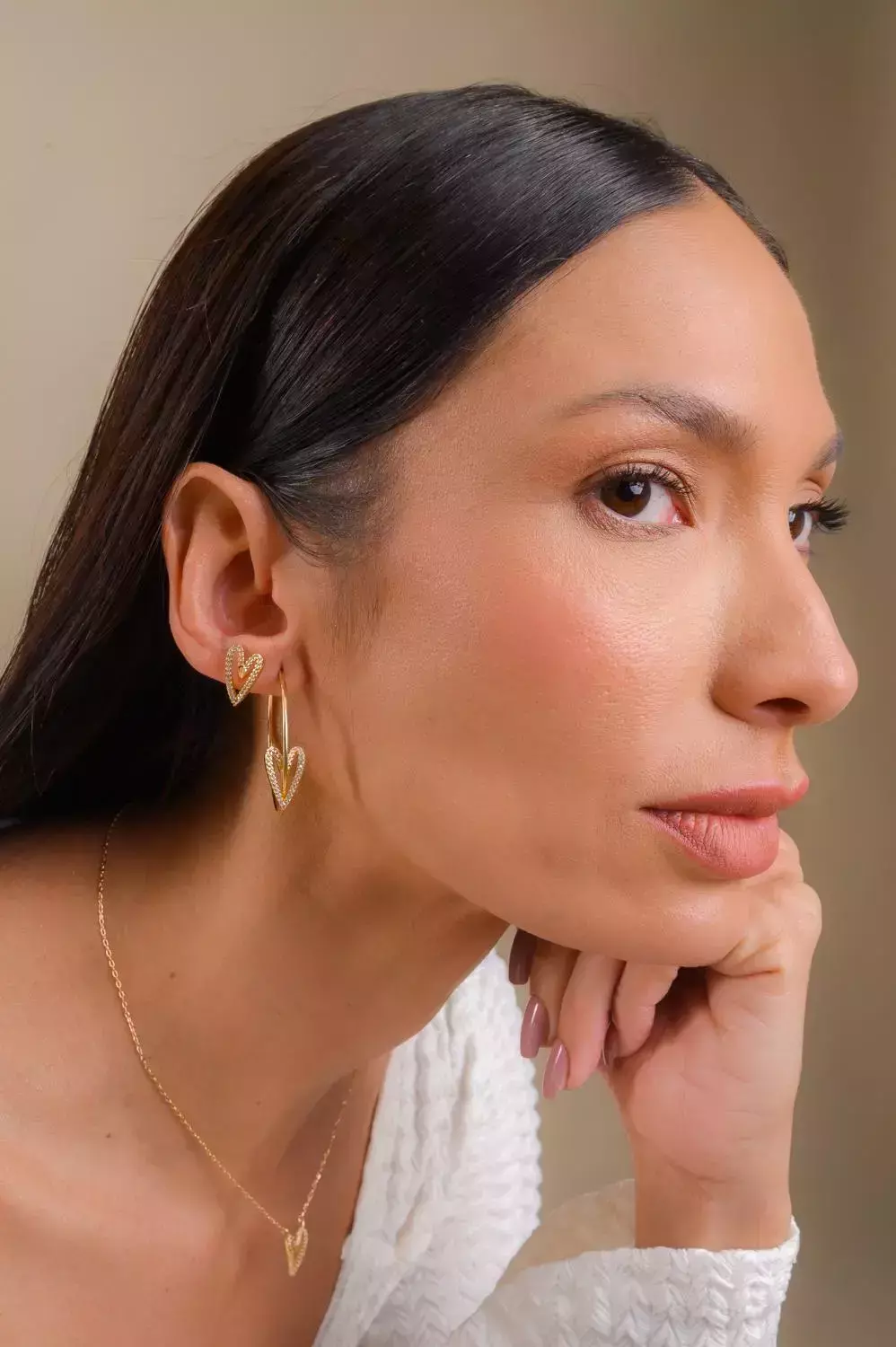 Brinco tortinho vazado cravejado em zircônia nas laterais.